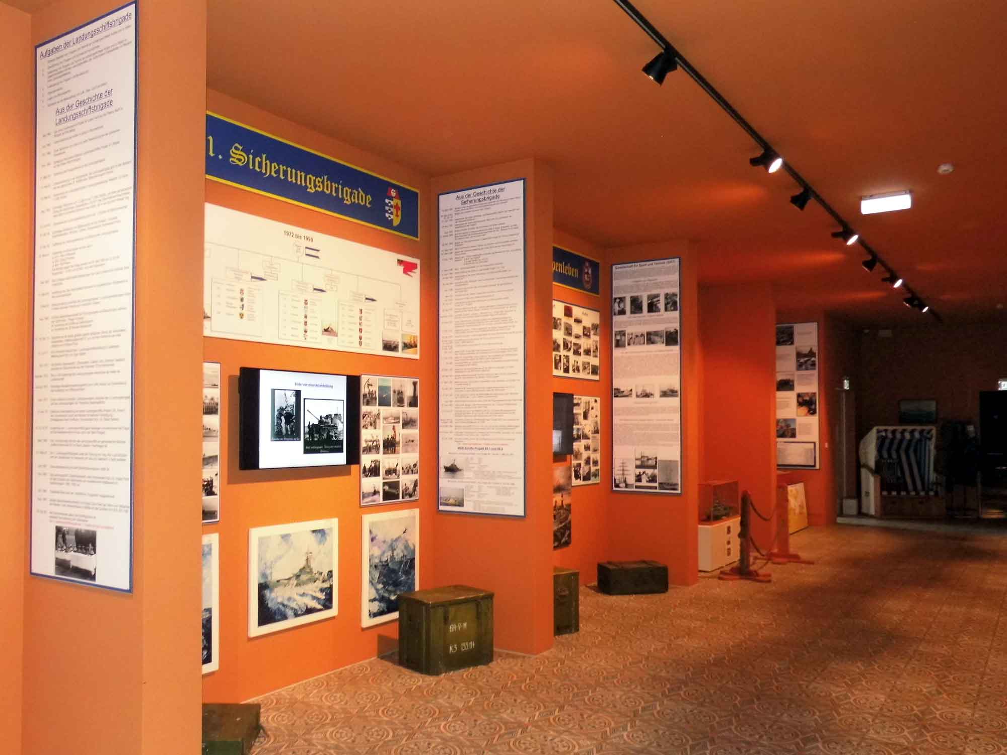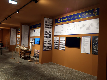 | Hier wird die Entwicklung des Hafens Peenemünde vom Mühlenteich bis zum heutigen Hafen gezeigt und führt durch den Werdegang von der "Seepolizei" bis zur "Volksmarine". Es wird in erster Linie die Geschichte der 1. Flottille mit allen unterstellten Einheiten wie z. B. die Landungsschiffbrigade, Sicherungsbrigade, Rückwärtigen Diensten und vieles mehr erläutert. Natürlich ist die Ausstellung nicht komplett und die Themen werden laufend erweitert und ausgetauscht, so dass es immer etwas Neues zu entdecken gibt.